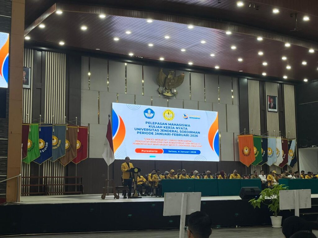 NEWSBMSTV Purwokerto– Universitas Jenderal Soedirman (Unsoed) secara resmi melepas mahasiswa Kuliah Kerja Nyata (KKN) untuk diterjunkan ke berbagai daerah, dalam sebuah acara yang berlangsung di Auditorium Graha Widyatama Prof Rubijanto Misman Unsoed, Purwokerto, pada Selasa (6/1/26) Pagi.