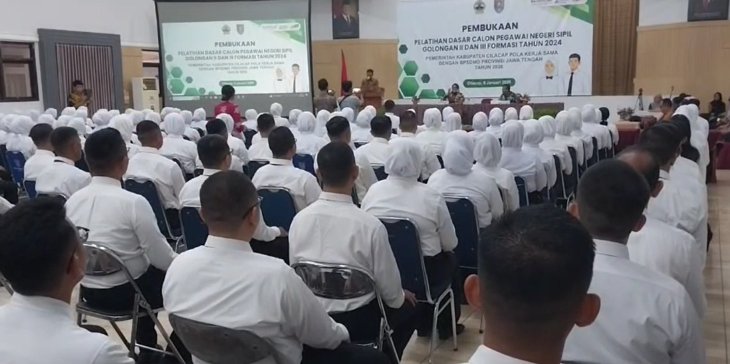 NEWSBMSTV Purwokerto – Setda Cilacap Sadmoko Danardono Buka Pembukaan Pelatihan Dasar Calon Pegawai Negeri Sipil (CPNS) Golongan Ii Dan Iii Formasi Tahun 2024 Pemerintah Kabupaten Cilacap Pola.Kerjasama Dengan Bpsdmd Propinsi Jawa Tengah Tahun 2026. Pelatihan Selama 4 Bulan Baik Melalui Of Line Maupun On Line. Diharapkan 30 Hingga 34 Tahun Kedepan Cpns Yang Saat Ini Mengikuti Pelatihan Menjadi Pns Yang Handal Dimasanya Nanti, Sehingga Kedepan Cilacap Akan Lebih Bercahaya Maju Besar.
