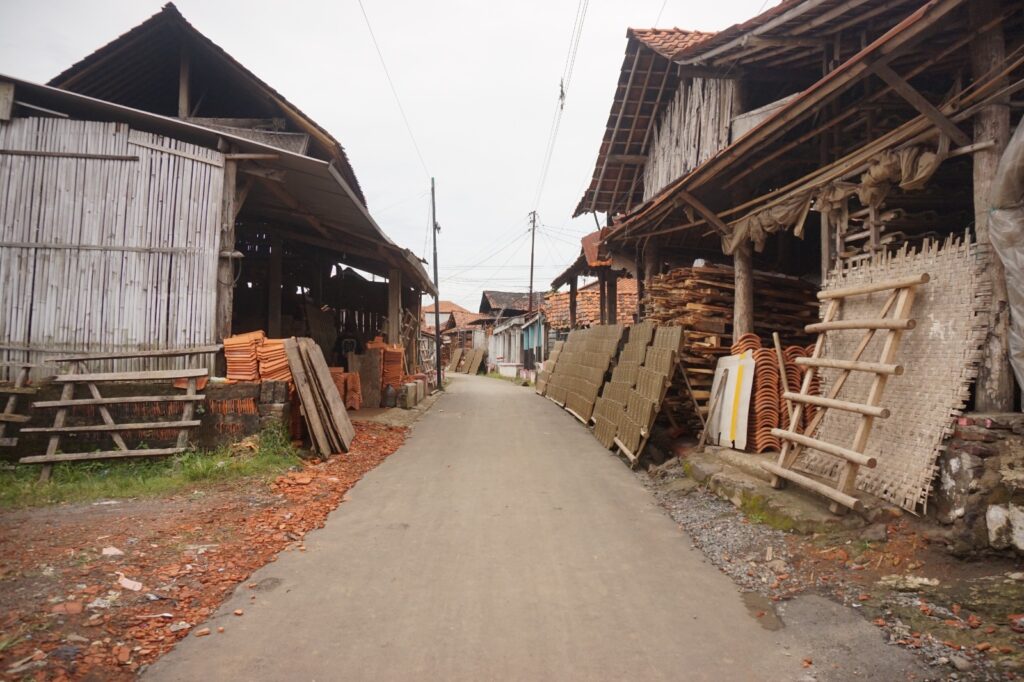 Deretan genteng tanah liat mentah dijejer untuk proses pengeringan disalah satu sentra industri genteng rumahan di pencasan, ajibarang, Kab. Banyumas. (foto: dok. Fazal Muhtadie)
