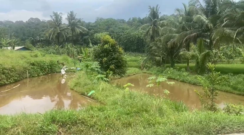 “Airnya keruh jadi ikan pada mati, petani ikan di sini pada rugi karena banyak yang mati,” ujar Ahmad saat ditemui di lokasi kolamnya.