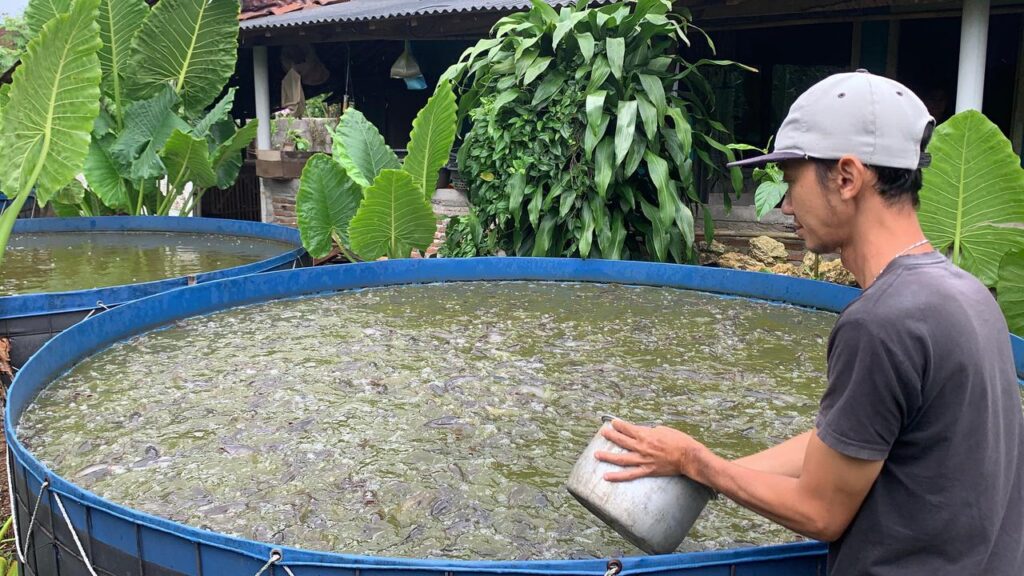 Pemberian Pakan Lele di Kolam Terpal, Upaya Tingkatkan Ketahanan Ekonomi Keluarga (Foto : Dok. Adnan Bagus)