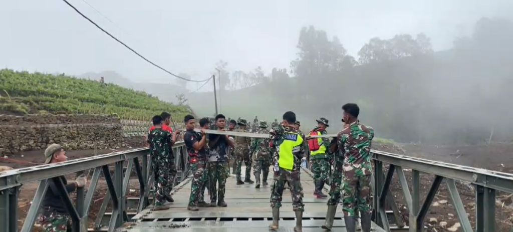 TNI Bangun Jembatan Darurat Di Lokasi Bencana